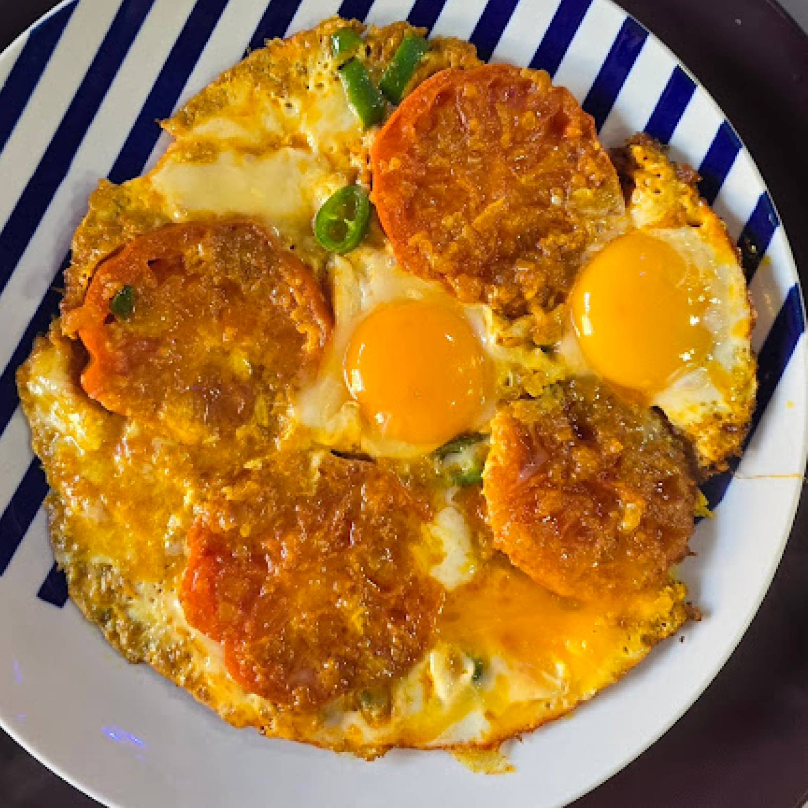 3 œufs, tomates fraîches et épices avec du pain lavaash